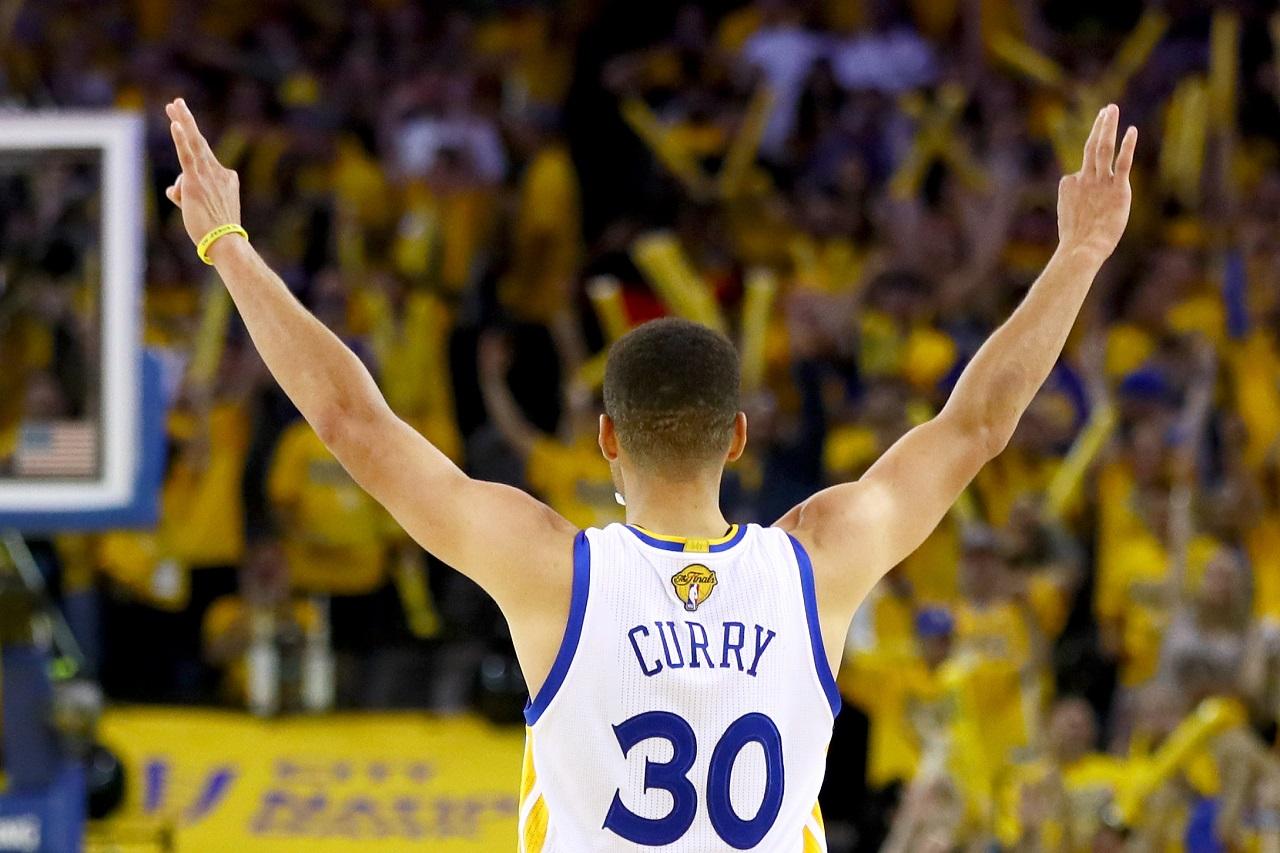 OAKLAND, CA JUNE 19: Stephen Curry #30 of the Golden State Warriors reacts after scoring a three-point basket against the Cleveland Cavaliers in Game 7 of the 2016 NBA Finals at ORACLE Arena on June 19, 2016 in Oakland, California. NOTE TO USER: User expressly acknowledges and agrees that, by downloading and or using this photograph, User is consenting to the terms and conditions of the Getty Images License Agreement. (Photo by Ezra Shaw/Getty Images)