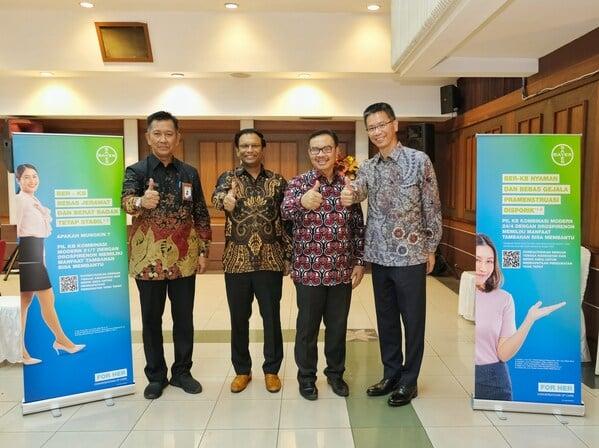 Peluncuran Bayer for Her di Indonesia bertepatan pada Hari Kontrasepsi Sedunia 2023 di acara Kick Off Kolaborasi Pelayanan KB Nusantara BKKBN tahun 2023. Kiri – Kanan: Sukaryo Teguh Santoso, Plt.Deputi KBKR BKKBN; Kinshuk Kunwar, Presiden Direktur Bayer Indonesia; Hasto Wardoyo, Kepala Badan BKKBN; Jeff Lai, Country Div.Head Pharmaceuticals Bayer Indonesia