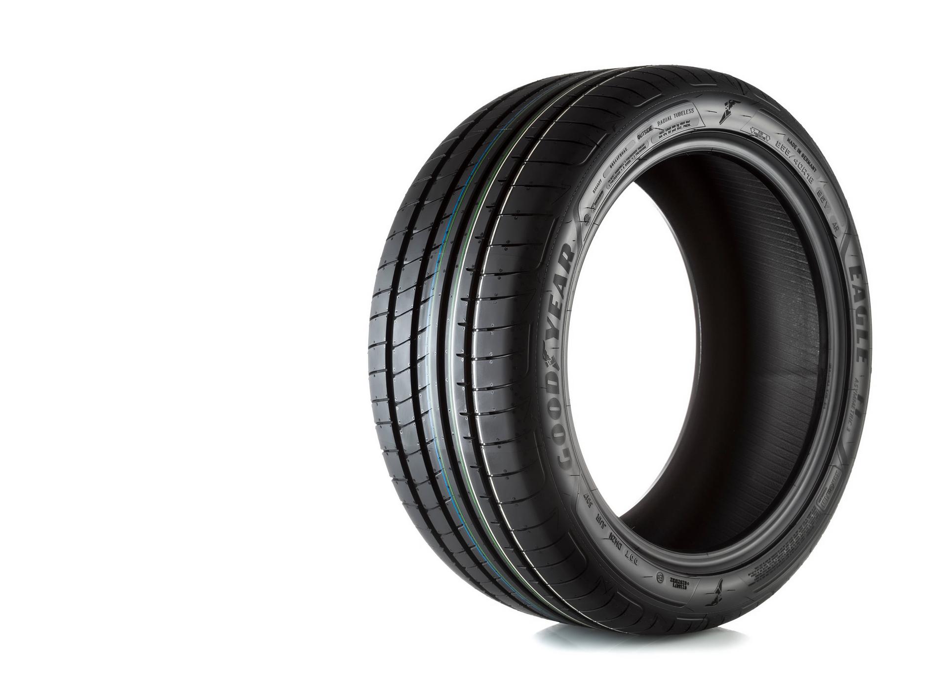 MOSCOW, RUSSIA MARCH 24, 2018: Summer car tire Eagle F1 Asymmetric 3 RunFlat 255/40 R18 95Y (RunFlat) brand of the company Goodyear, isolated on white background. Goodyear is an American international company, manufacturer of tires and other rubber products.