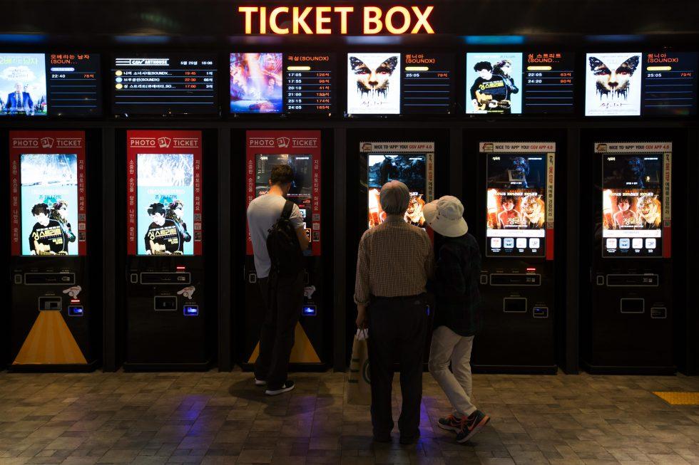 Customers purchase tickets at a self-service machine at the CJ CGV Co. Yeouido branch movie theater in Seoul, South Korea, on Wednesday, May 25, 2016. CJ CGV is considering selling stakes in some of its units, including one in China, to help fund its ambitions of turning into one of the worlds biggest operators of movie theaters, according to an executive. Photographer: SeongJoon Cho/Bloomberg via Getty Images
