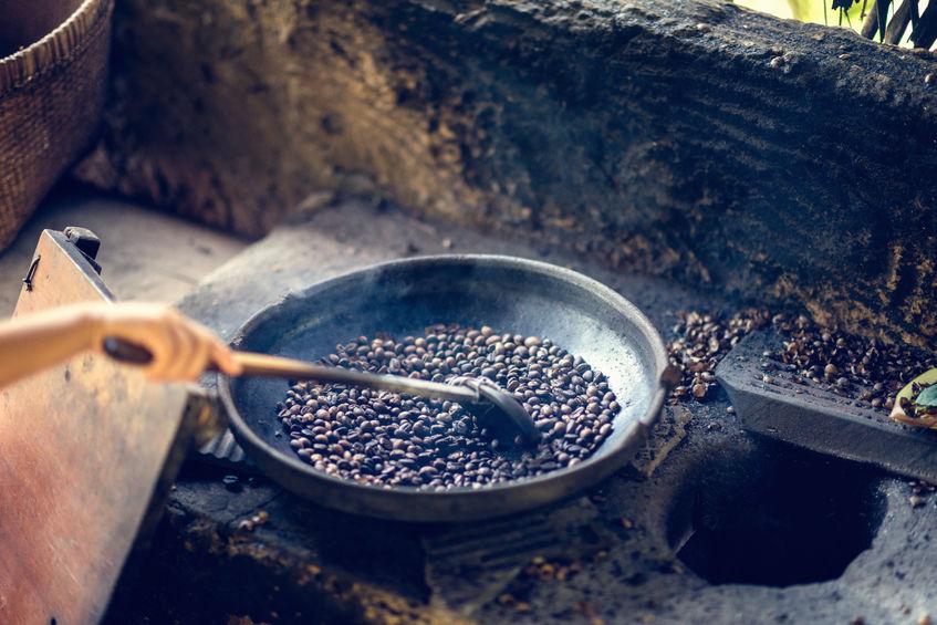 52981280 traditional method of coffee roasting on a civet coffee farm in indonesia. coffee is produced from beans that have been eaten and defecated by civets. also known as kopi luwak, this type of coffee is famous for its non-acidic, smooth taste and is one of t